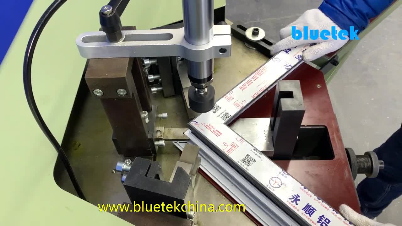 • Aluminum Frame Corner Crimping Machine is mainly used for the punching and riveting connection of aluminum doors and windows at 45° angle. The height of the punching and riveting profile is 130mm;