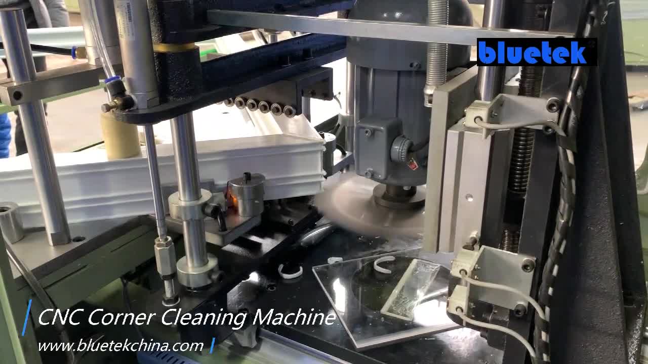 1. CNC UPVC corner cleaning machine, three cutters: saw blade cleans the outer corners, two knives clean the top and bottom sides.